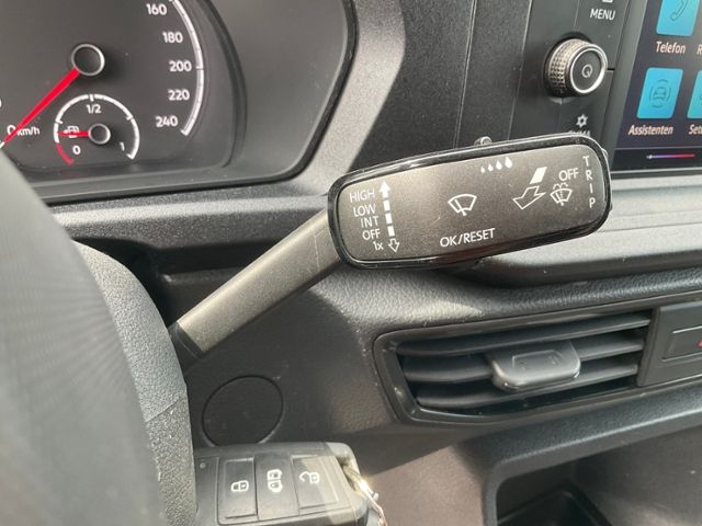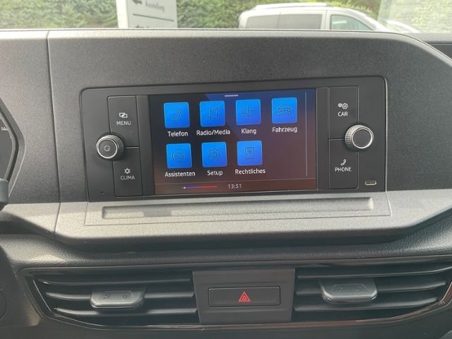 Klimaanlage; Fensterheber elektrisch vorn; Multifunktionsanzeige "Plus"; Teppichbodenbelag im Fahrerhaus; Lenksäule (Lenkrad) mechan. verstellbar, Höhen-/Längsverstellung; Türverkleidung und Armauflage in Kunststoff; Ladeflächenbelag aus Holz (Anthrazit): mehrfach verleimtes Sperrholz, Stärke 10 mm, rutschfest; Lenkrad; Mittelkonsole mit 2 universellen Getränkehaltern; Cockpit-Blende matt; Verbandmaterial, Warndreieck und 1 Warnweste